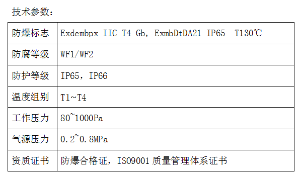 1.采用不锈钢或者钢板,机械强度高,气密性好,通入保护性气体作为介质形成正压腔内的微正压,隔离外部的可燃性气体粉尘。